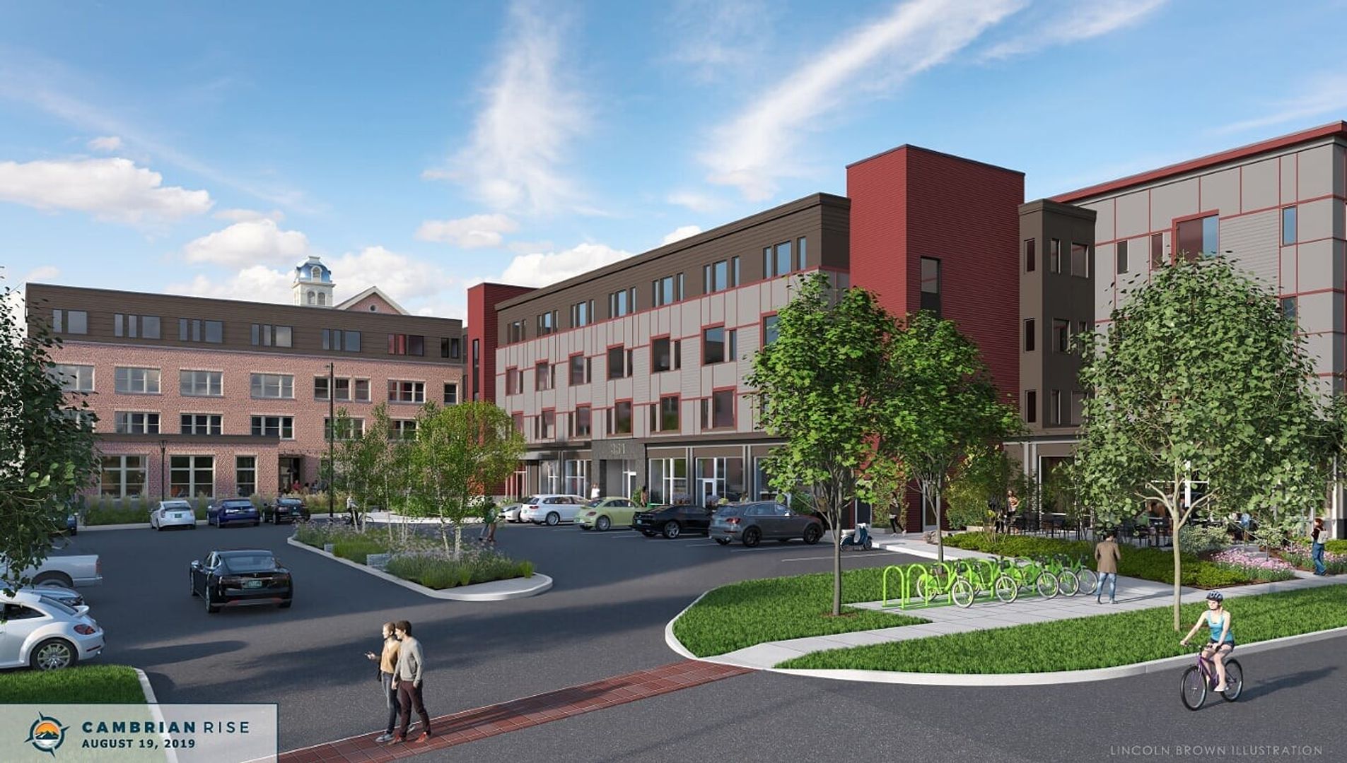 Cambrian Rise is a perfect mix of urban living and lakeside life on the shores of Lake Champlain in the heart of Burlington, Vermont. Connected to the Burlington Bike Path, Cambrian Rise upholds the principles of sustainability, community, diversity and healthy living. The design preserves natural resources and native vegetation while including fitness facilities, pedestrian friendly streets, biking, hiking and swimming to promote an intentional lifestyle.